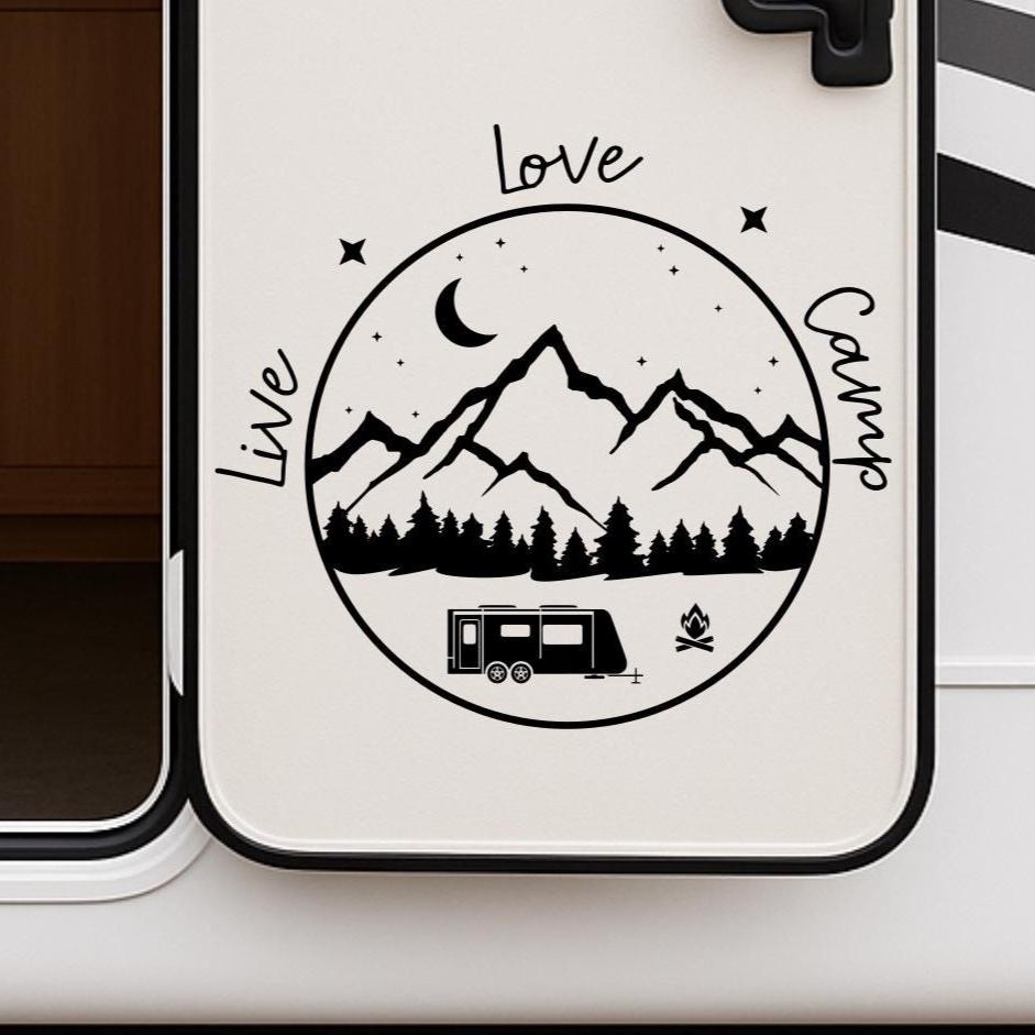 This Personalized rv decal is great for any type of RV, camper or motor home! It says "Live, Love, Camp" and has trees and a mountain scene. Let me know what type of camper you have in the personalization box below (class a, class b, etc) and I will make this just for you! If no RV type is selected it will come with a tow behind trailer as default.
