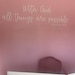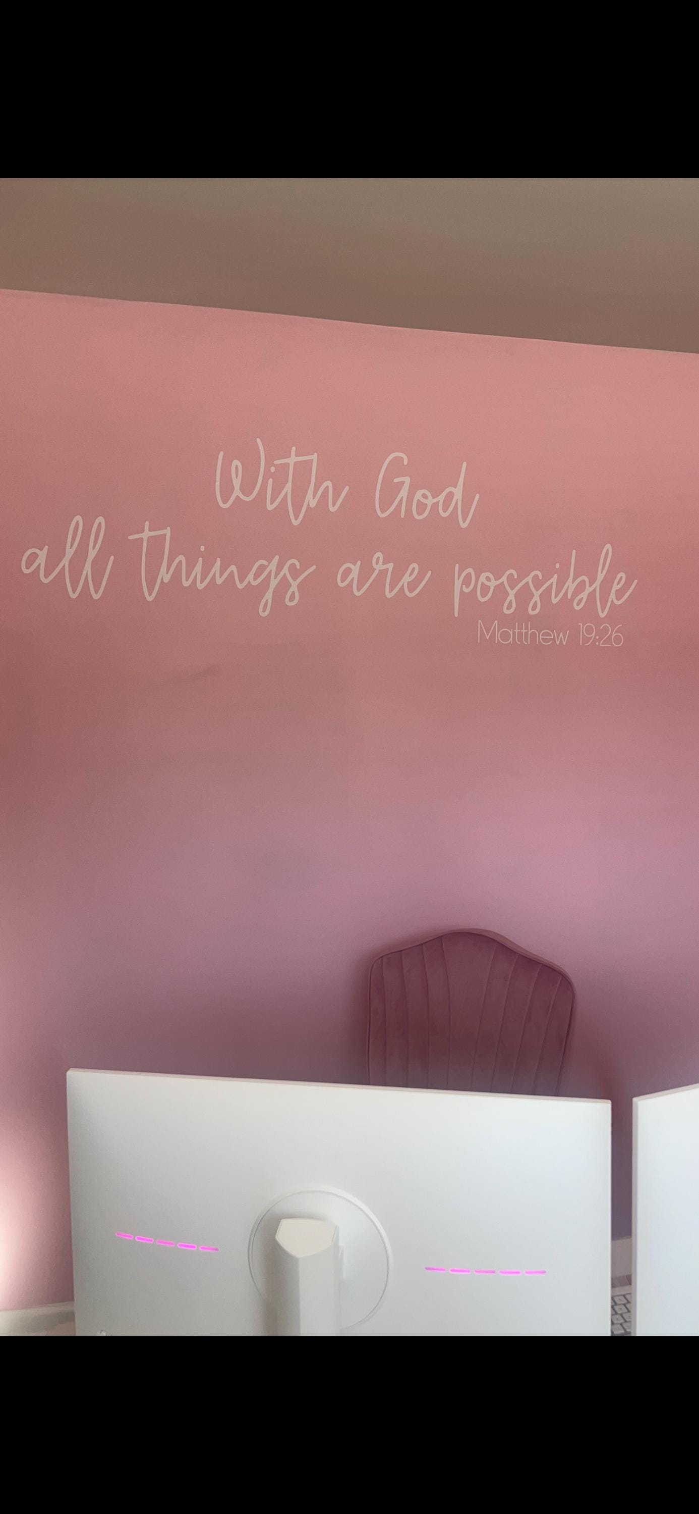 This Christian wall art vinyl wall decal says, "With God all things are possible -Matthew 19:26" and is great inspirational wall decor for a home or church. Custom bible quotes also available- if interested send me a message!