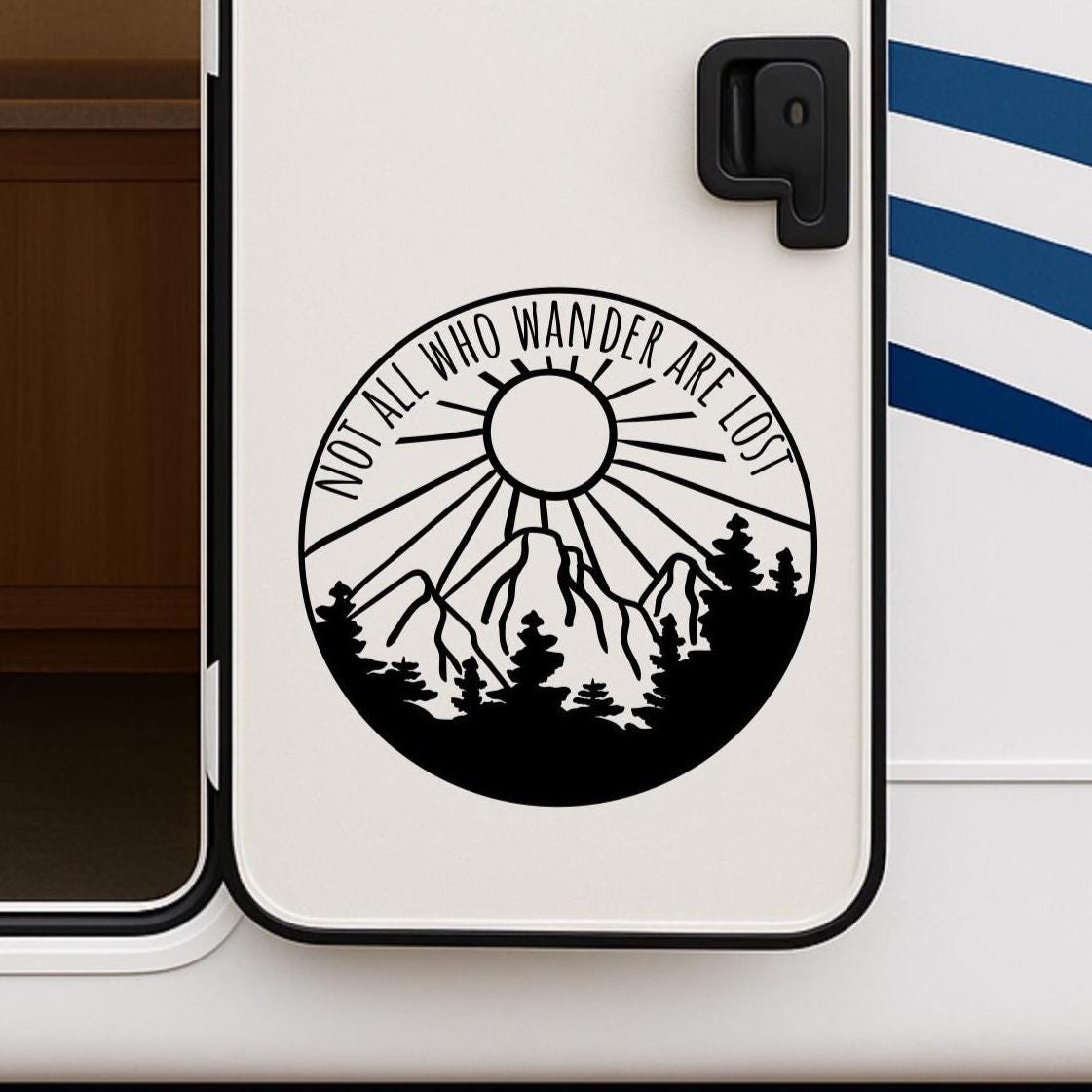 This RV camper decal for rv door, spare tire cover etc. says "Not all who wander are lost" and is great to show your spirit of adventure. A great decal for those who love a life of adventure on the open road!