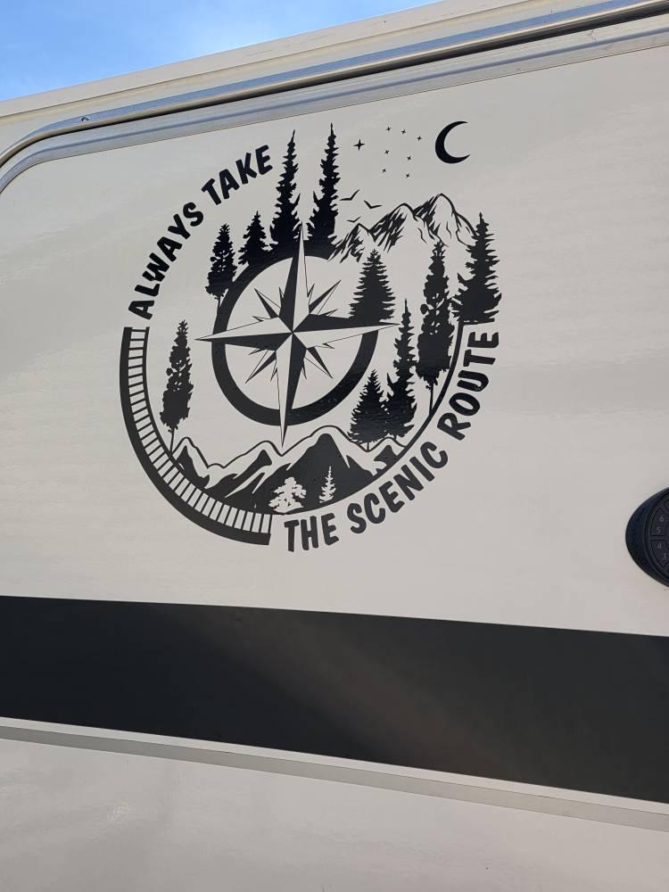 Always take the scenic route decal will be personalized with your last name. Leave it in the box below and select your color from the drop down menu. Thank you for visiting my page! Custom designs also available :)