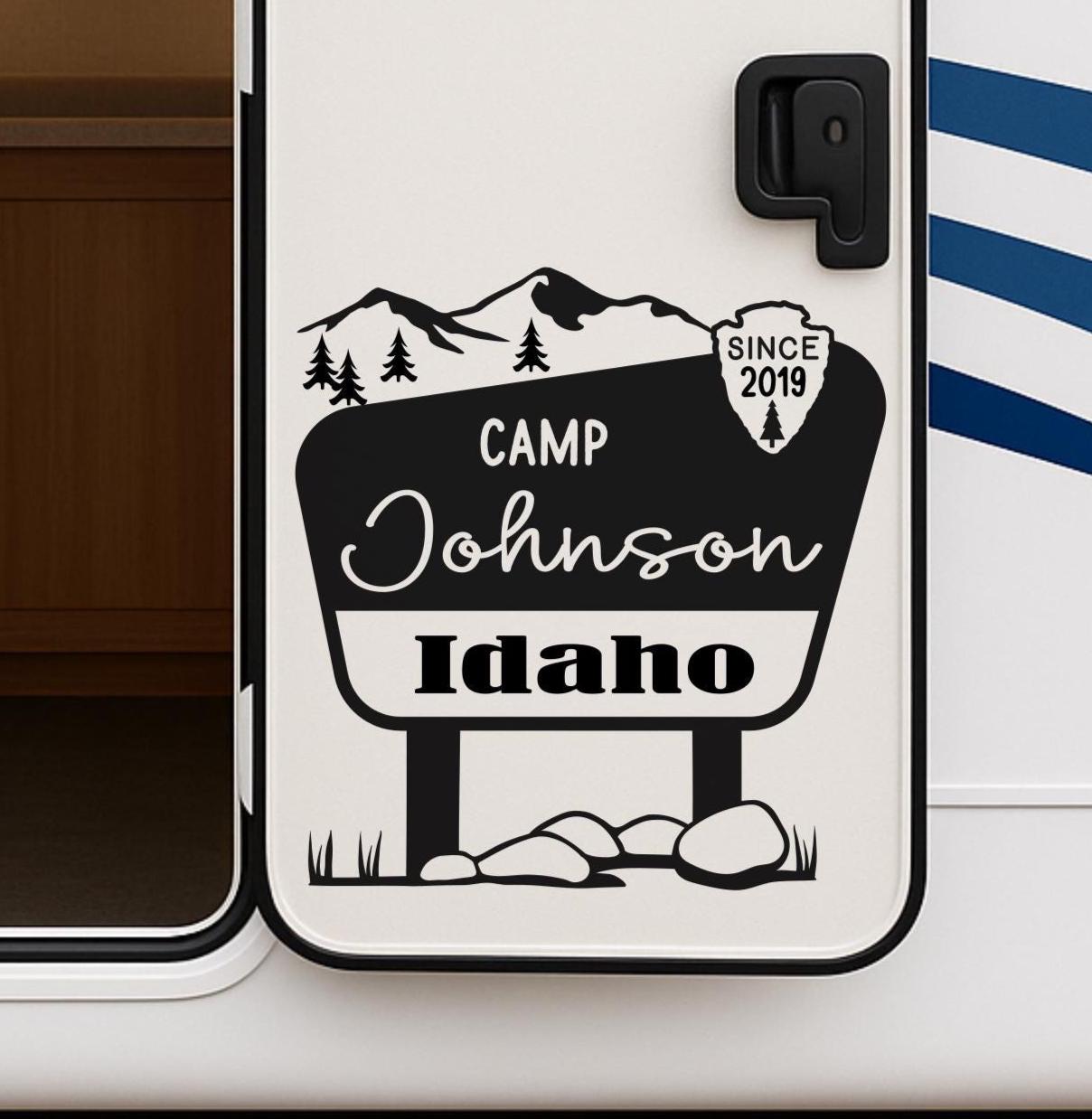 This national park sign rv decal is great for your rv door, slide out or anywhere else on your camper! Leave the last name, EST year and your state to personalize your decal with in the personalization box below.