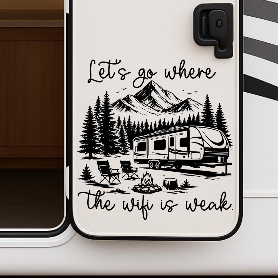 This Let's go where the wifi is weak RV decal is a great addition to your camper trailer or motorhome to show your sense of adventure to fellow travelers!