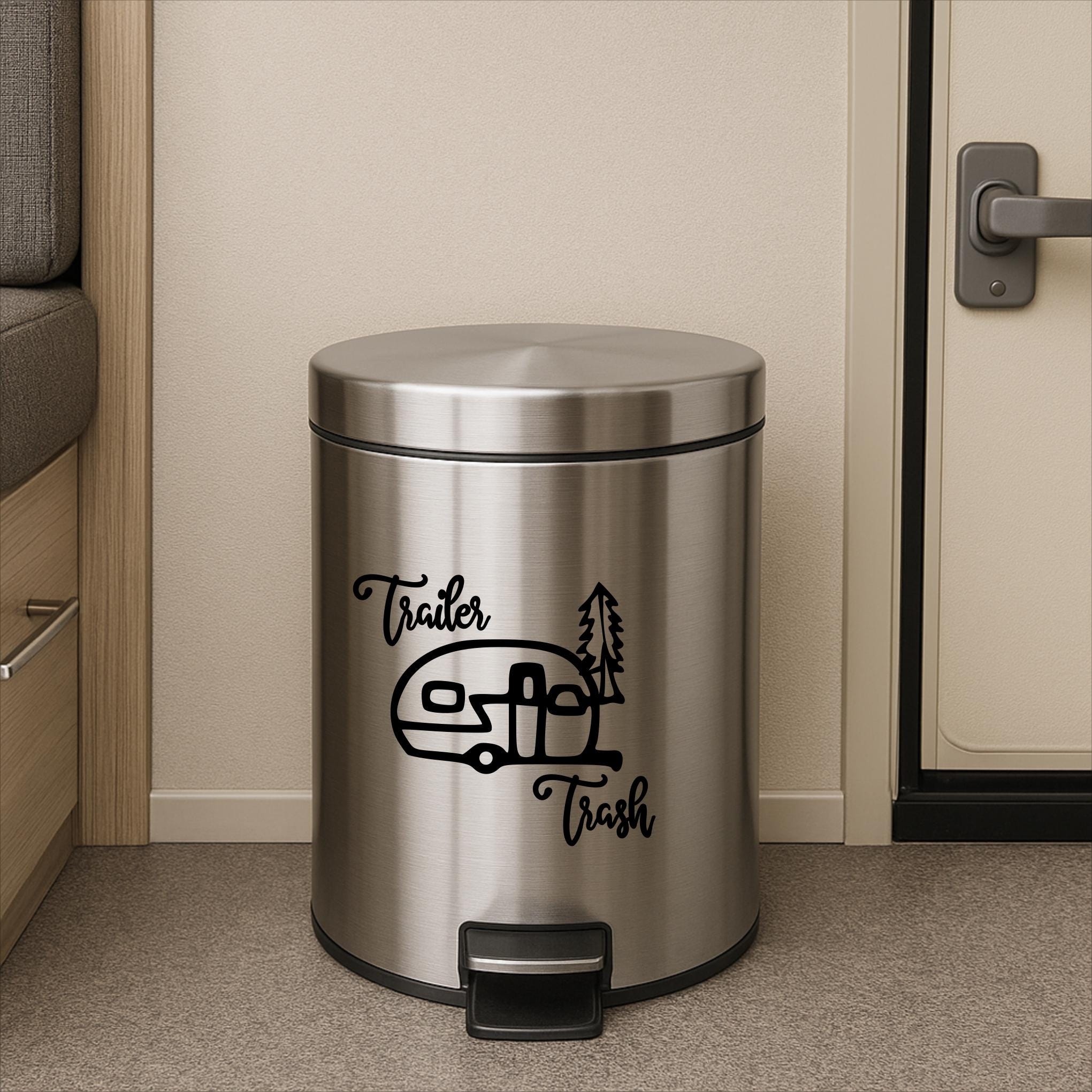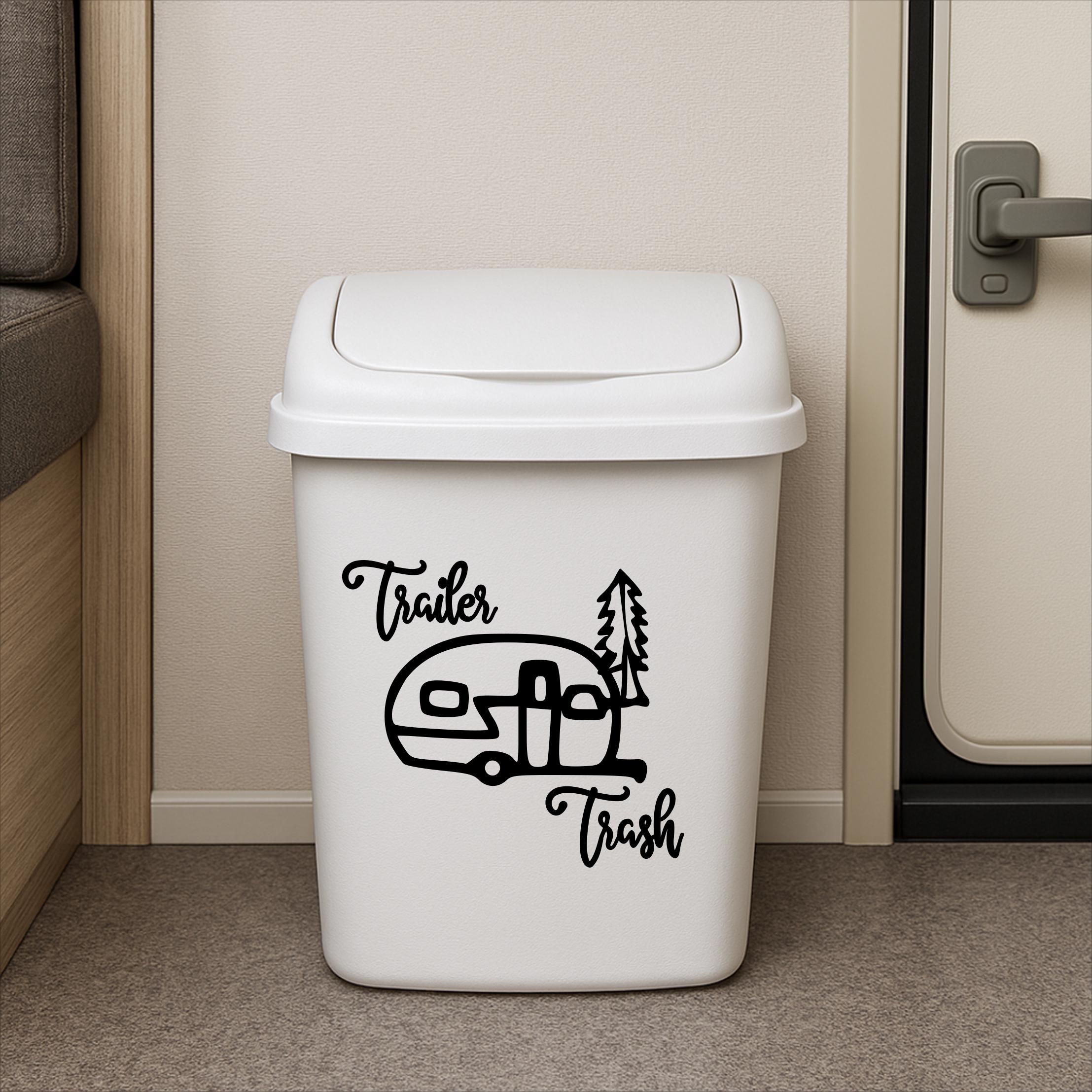 This trailer trash decal is a cute addition to your trash can in your camper. It has a cute vintage camper with tree.