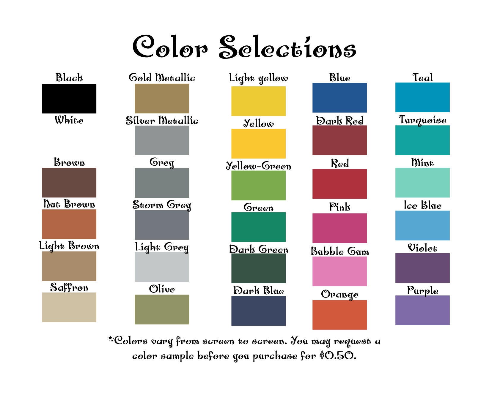 A free squeegee will be included with your order for easy application. I will also include a test decal to make sure it will stick to your chosen surface before you apply it. Check out all of the colors available! If you would like a decal larger or smaller than the sizes listed, just let me know and I will make it to meet your needs. Prices vary depending on size. Your order will be shipped within 3-5 business days. If you have any special requests, enter them in the notes to seller box at checkout.
